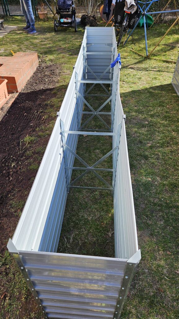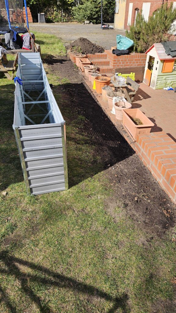 Neben ihrer Funktion als Pflanzfläche erfüllen sie nun auch eine wichtige Aufgabe: Sie bieten zusätzlichen Schutz und sorgen dafür, dass unsere Kinder sicher spielen können, ohne in die Senke der angrenzenden Terrasse zu gelangen.